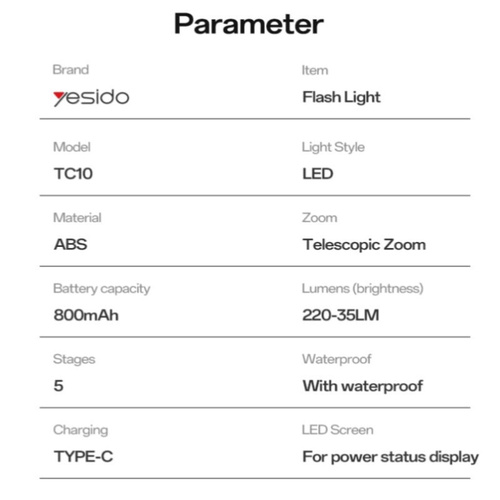 چراغ قوه دستی یسیدو مدل TC10 با نور مهتابی